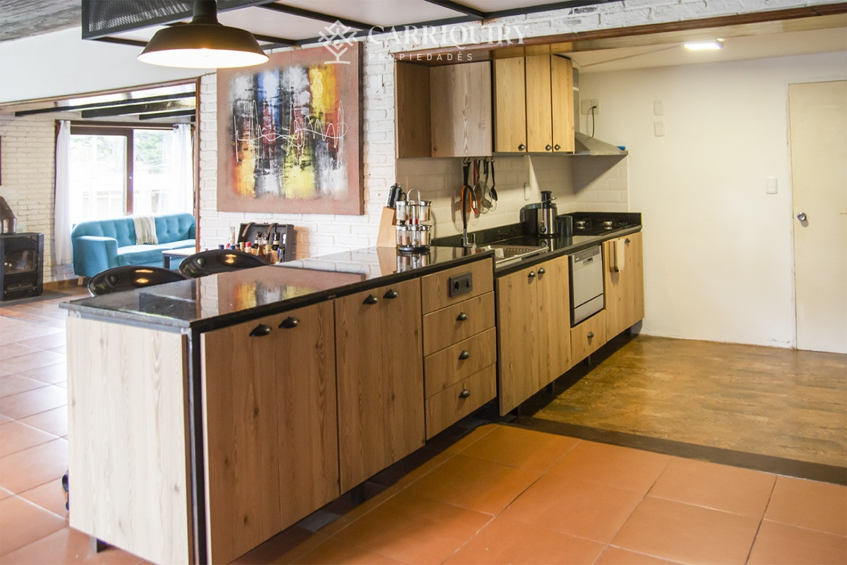 El comedor principal se encuentra estratégicamente entre la cocina y el deck, cuenta a la vez con calefacción por estufa a leña de alto rendimiento y un gran aire acondicionado.