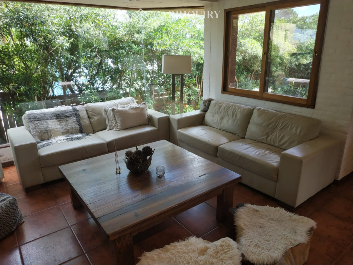 Porsche de entrada, recibidor, living totalmente equipado para 8 personas con sofas italianos y mobiliario, smart tv 55, estufa a leña.