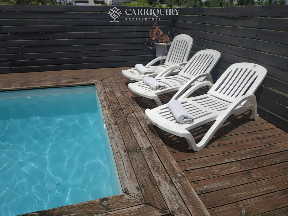 Jardín y deck. Piscina completa con juegos y reposeras italianas.