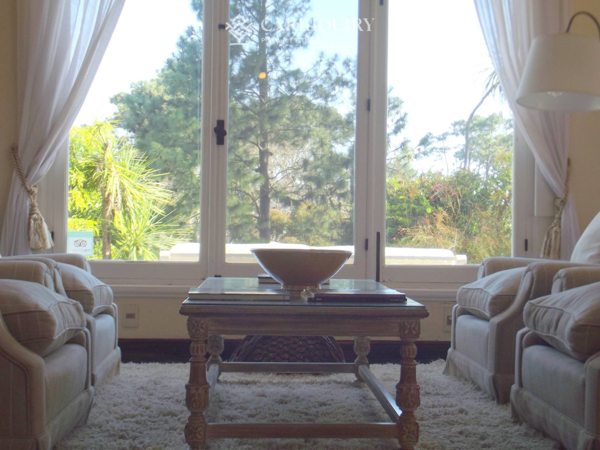 Cuenta con gran living distribuido en varios sectores, toillete, comedor con excepcional bowindow hacia el parque, cocina con despensa y baño, 9 dormitorios en Suite, 5 en planta baja y 4 en planta alta con vista al mar.