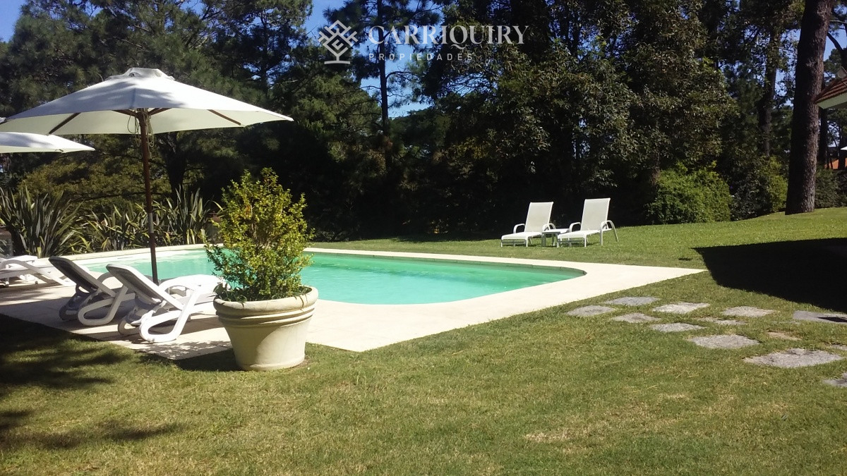 Gran barbacoa techada, habitación de servicio con baño, hermosa piscina con solarium.